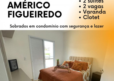Sobrado localizado em avenida com grande estrutura de comércio, sala para 2 ambientes em piso porcelanato, cozinha integrada com a sala conceito aberto, lavabo, área de serviço com pequeno quintal, 2 dormitórios no pavimento superior, sendo 2 suíte uma com espaço para closet e varanda, tudo em acabamento de primeira qualidade, janelas e portas em alumínio, pedras em granito, todos os ambientes com preparação para ar condicionado, garagem coberta para 1 veículos, condomínio com portaria 24 h e lazer para toda a família